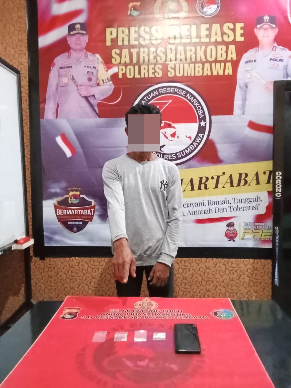 Sumbawa Besar, Saka NTB–Seorang pria berinisial A (41) warga Desa Serading Kecamatan Moyohilir Kabupaten Sumbawa tak berkutik saat diamankan petugas. Terduga A diamankan petugas saat berada di pinggir jalan kawasan Pantai Jempol Kecamatan Labuhan Badas, Kamis (4/2024) sekitar pukul 21.00 Wita.