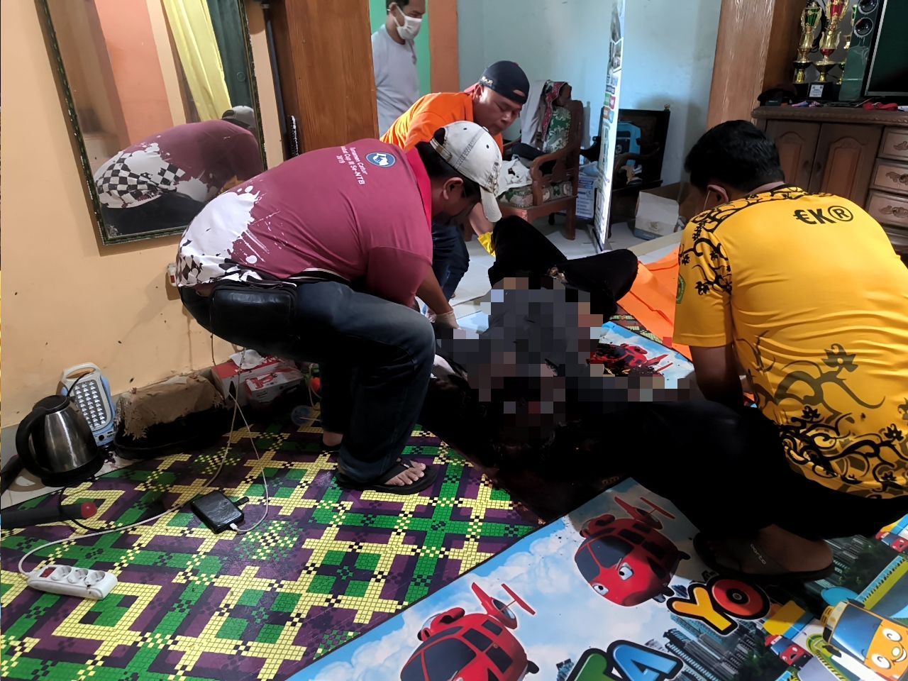 Saat kejadian, istri korban diketahui sedang berada di Mataram untuk menemani anak mereka.