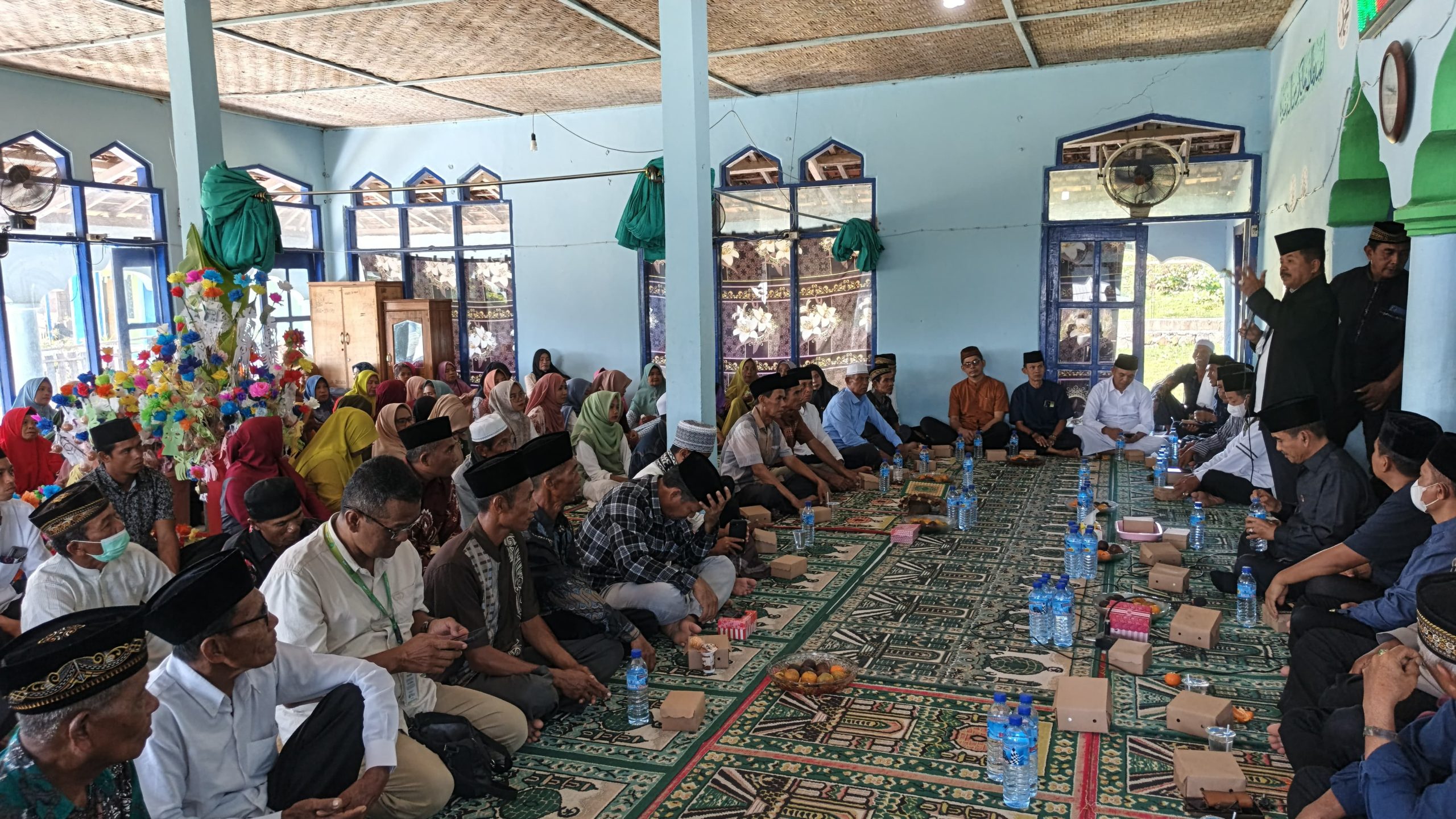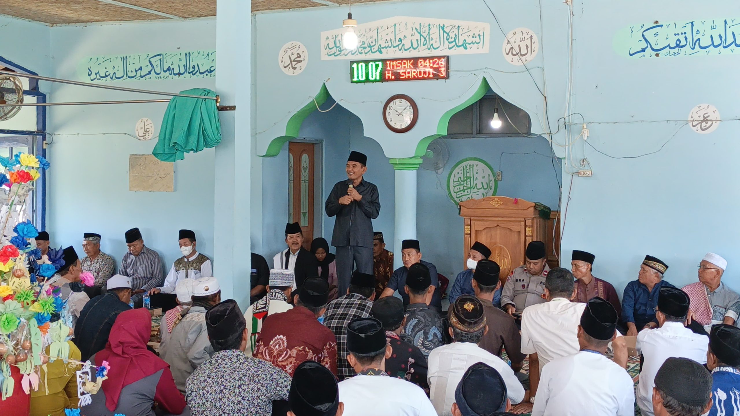 Wabup dalam kesempatan ini juga menyerahkan bantuan 100 sak semen untuk pembangunan mesjid Al- Abror.