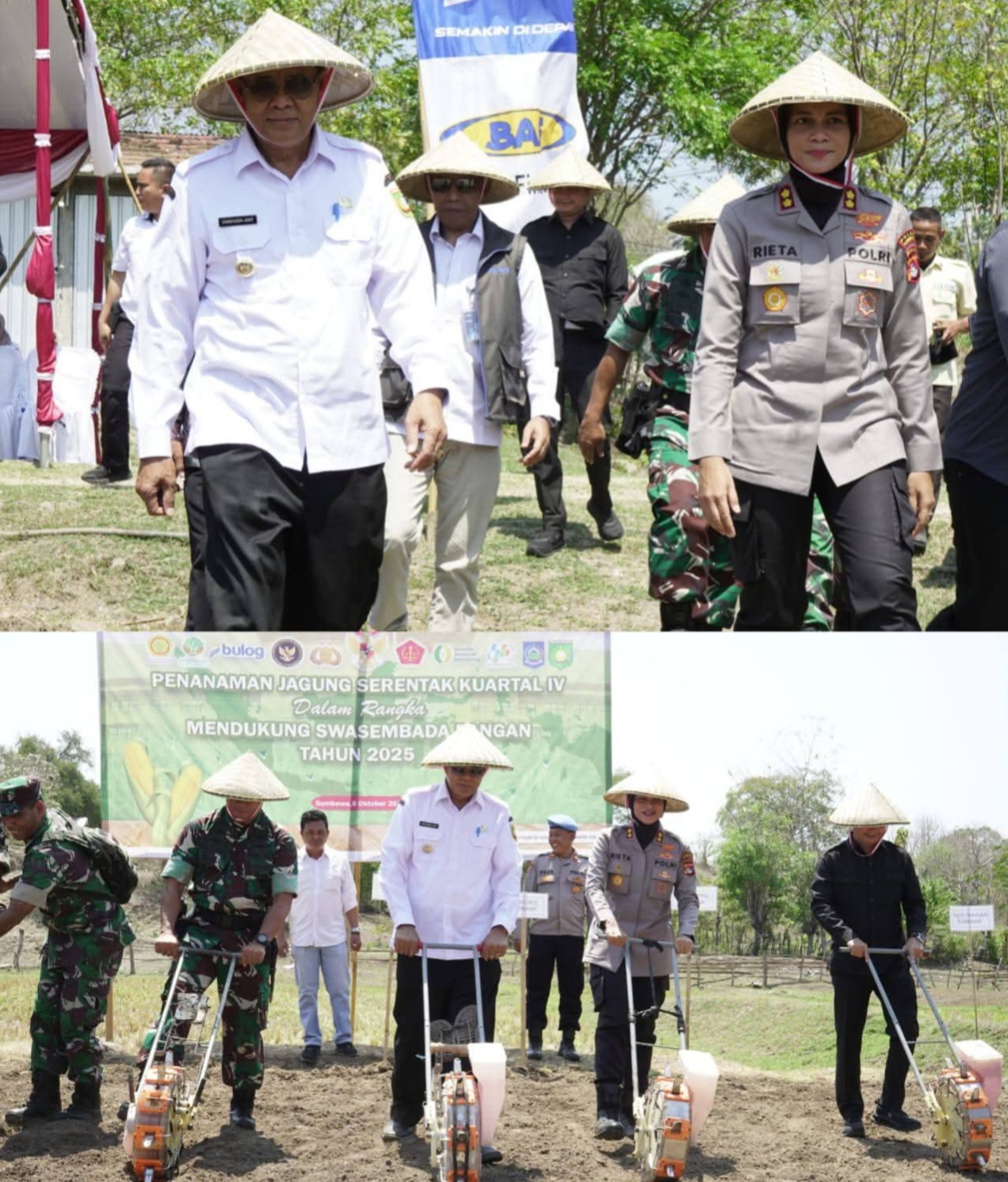 Dalam sambutannya, Kapolres Sumbawa AKBP Marieta Dwi Ardhini menyampaikan bahwa program tanam jagung serentak kwartal IV ini dipusatkan secara nasional di Provinsi Banten dan dihadiri langsung oleh Wakil Presiden RI. Menurutnya, Moyo Utara dipilih sebagai lokasi pelaksanaan di Kabupaten Sumbawa karena wilayah ini dinilai strategis dalam mendukung ketahanan pangan nasional.