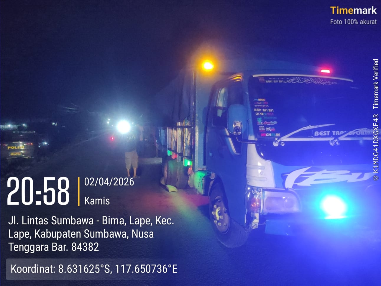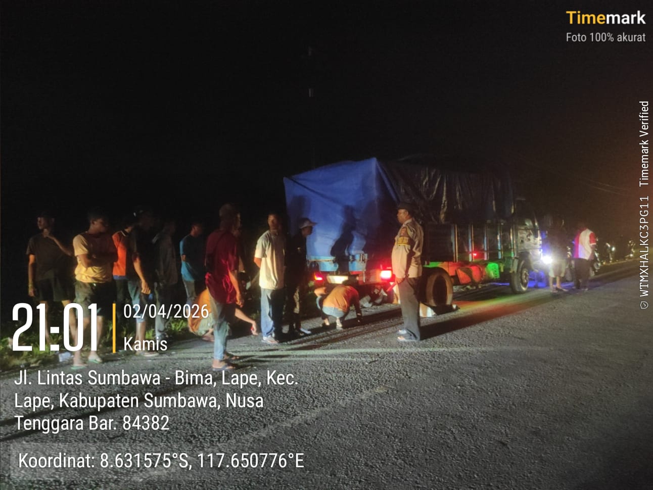 Sumbawa Besar, SakaNTB.com| 3 April 2026-– Kecelakaan lalu lintas yang melibatkan sepeda motor dan truk bak terjadi di Jalan Lintas Sumbawa–Bima, tepatnya di Dusun Unter Malang, Desa Lape, Kecamatan Lape, Kabupaten Sumbawa, pada Kamis (2/4/2026) sekitar pukul 20.30 WITA.