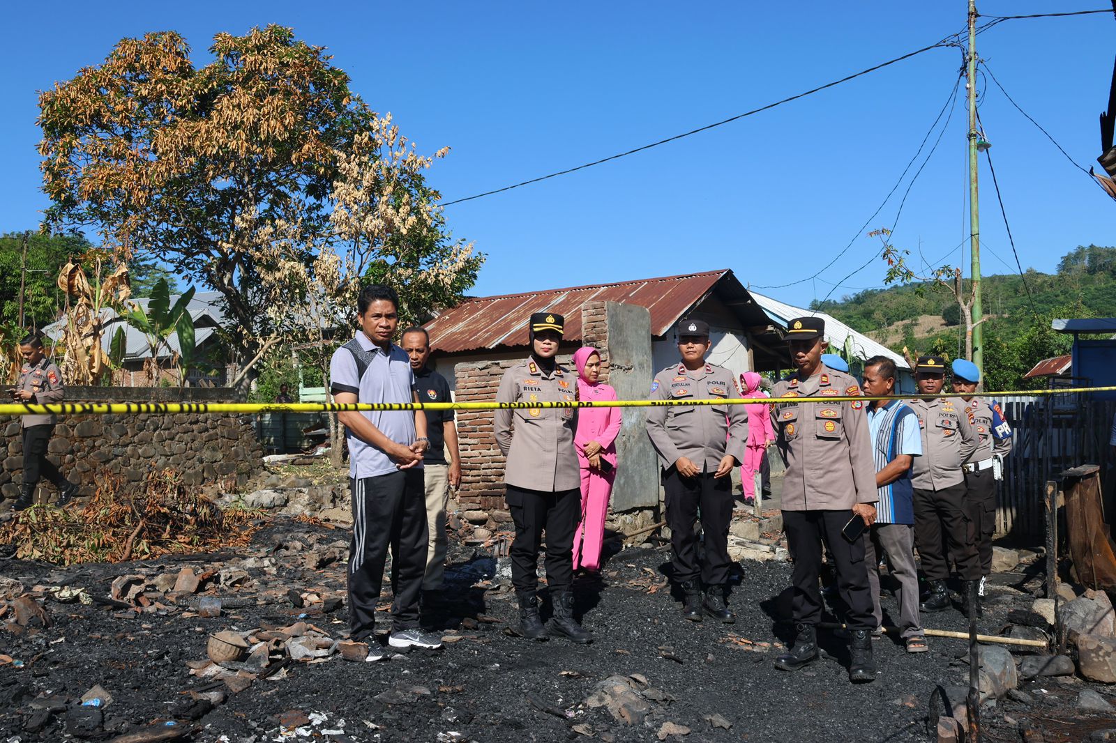 Di lokasi kejadian, Kapolres melihat langsung kondisi puing-puing rumah warga yang hangus terbakar. Sejumlah bangunan dilaporkan rata dengan tanah akibat peristiwa tersebut. Usai peninjauan, rombongan menuju posko bencana di balai pertemuan dusun untuk menyerahkan bantuan secara simbolis.